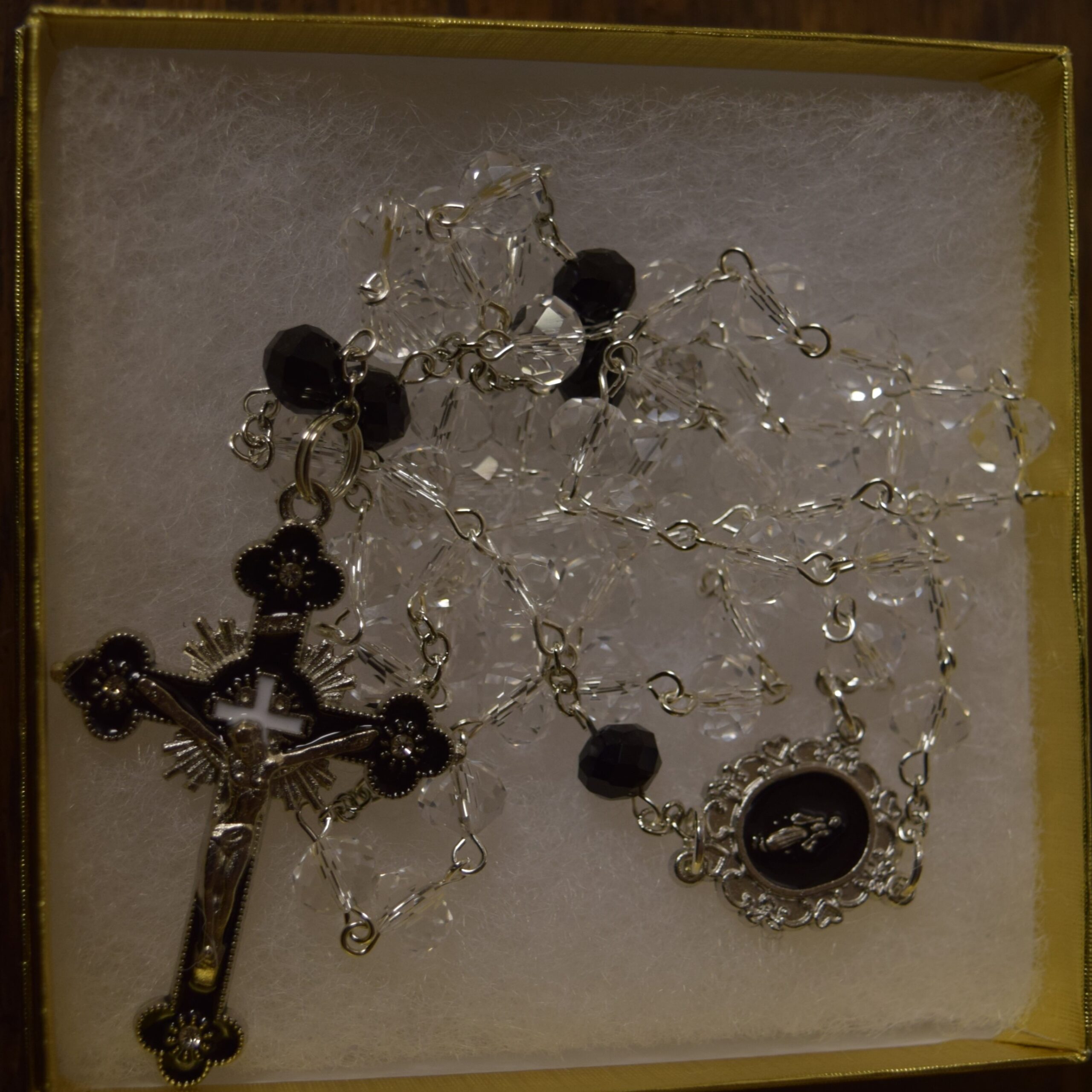 Crystal Clear Rosary with Black accents