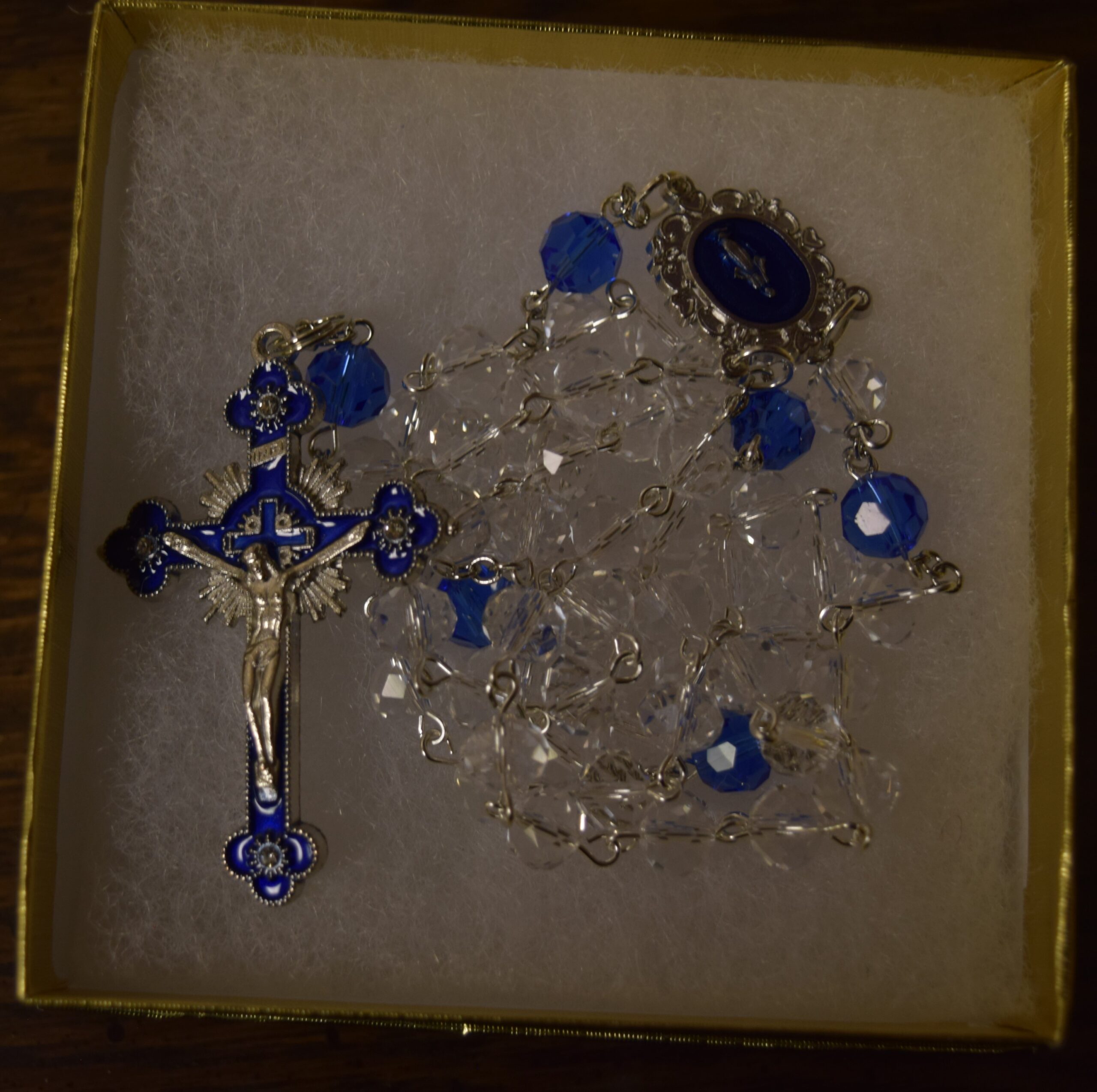 Crystal Clear Rosary with Blue Accents